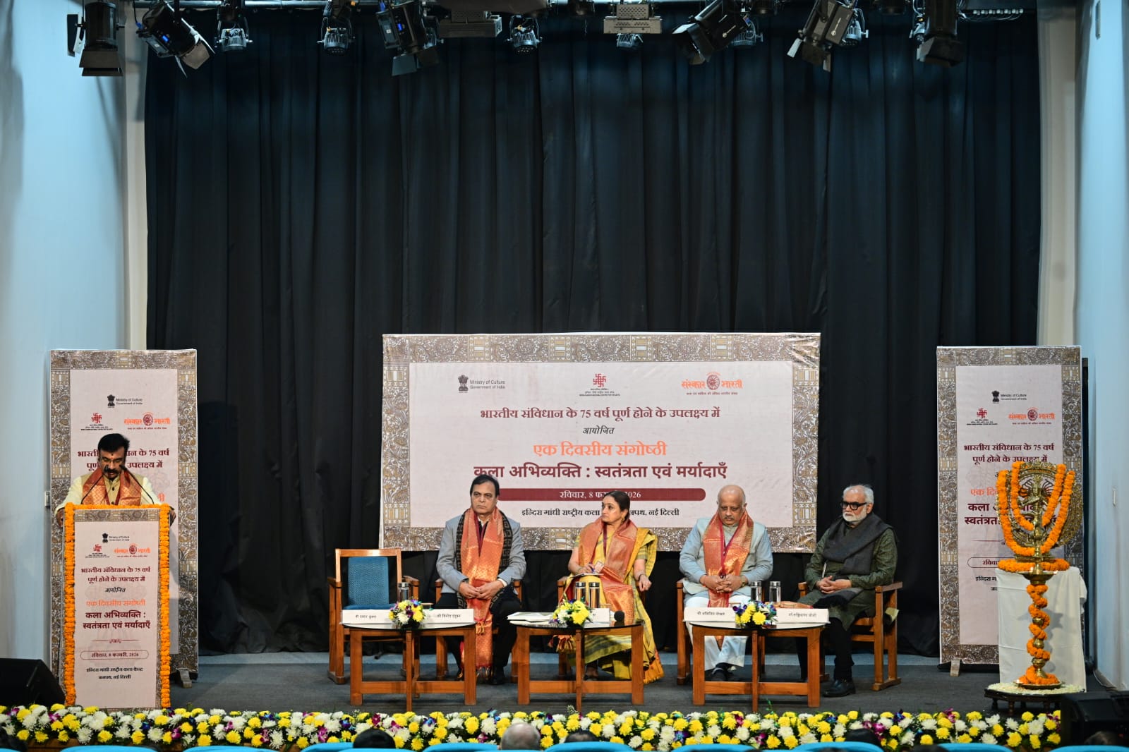 नई दिल्ली, 09 फरवरी । भारतीय संविधान के 75 वर्ष पूर्ण होने के अवसर पर संस्कृति मंत्रालय, संस्कार भारती एवं इंदिरा गांधी राष्ट्रीय कला केंद्र (आईजीएनसीए) के संयुक्त तत्वावधान में आयोजित एक दिवसीय संगोष्ठी “कला अभिव्यक्ति: स्वतंत्रता एवं मर्यादाएं” आईजीएनसीए के सभागार में सम्पन्न हुई। यह संगोष्ठी अमृत महोत्सव काल में कला, संविधान और समाज के आपसी संवाद का एक सशक्त मंच बनी।