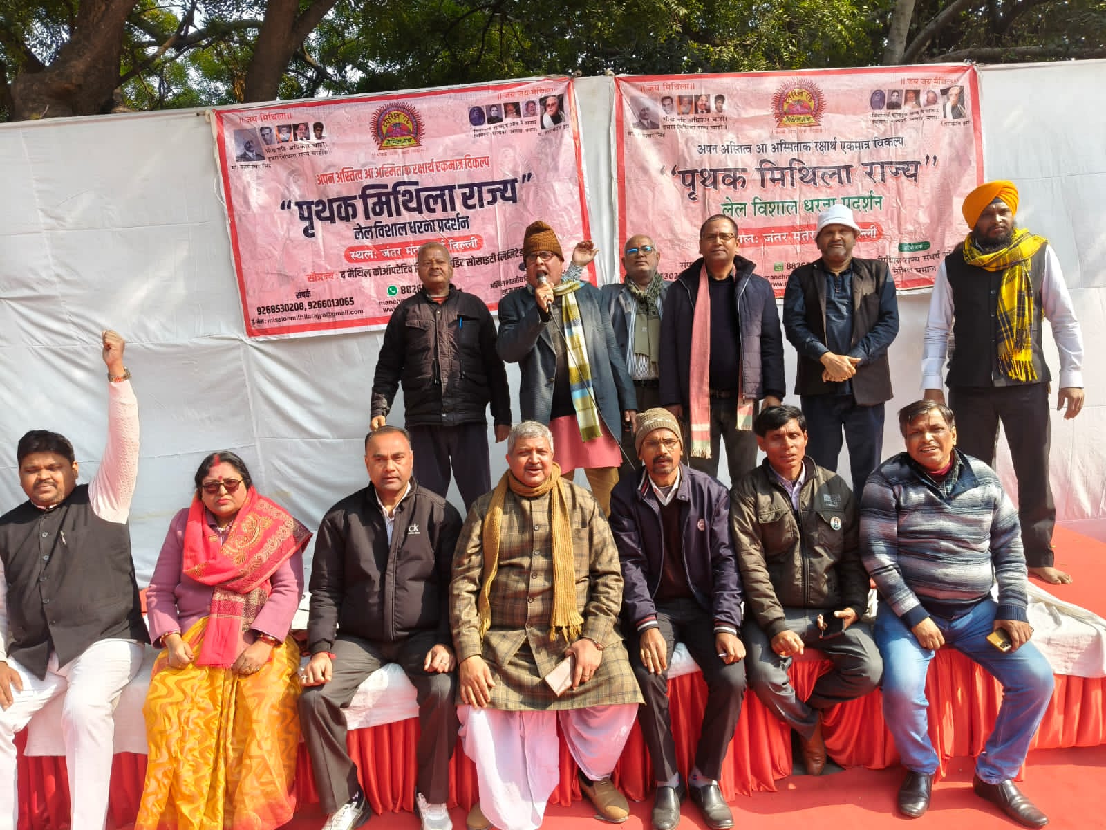 सहरसा, 03 फ़रवरी । भारतीय संविधान अंतर्गत पृथक मिथिला राज्य निर्माण की मांग को लेकर अखिल भारतीय मिथिला राज्य संघर्ष समिति और मिथिला वासी के तरफ से जंतर मंतर दिल्ली पर मंगलवार को एकदिवसीय धरना-प्रदर्शन किया गया।तत्पश्चातग्रेटर नोएडा संयोजक मदन कुमार झा के नेतृत्व में राष्ट्रपति, प्रधानमंत्री एवं गृह मंत्री को ज्ञापन दिया गया।प्रदर्शन का नेतृत्व अंतर्राष्ट्रीय संयोजक प्रोफेसर अमरेंद्र कुमार झा ने की, जिसमें सैकङों मैथिलों ने हिस्सा लिया।बाद में धरना की अध्यक्षता विनोद झा अध्यक्ष भारतीय महासंघ पार्टी और संचालन एडवोकेट मुकेश आनंद ने की।