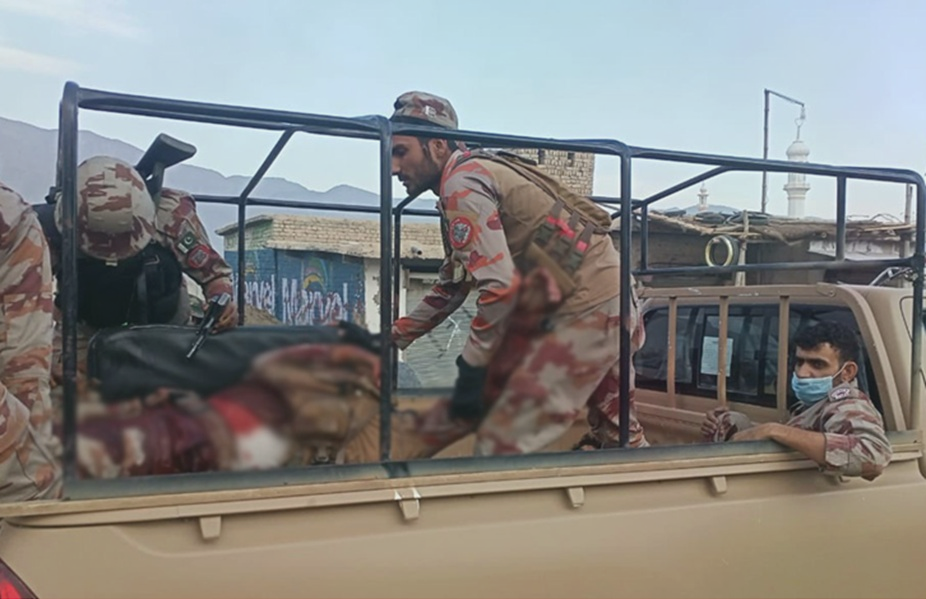 डान अखबार की रिपोर्ट के अनुसार, एफसी के प्रवक्ता के बयान के अनुसार एक हमलावर को खुद को उड़ा लेने के बाद सुरक्षाबलों ने कम से कम तीन हमलावरों को मार गिराया गया। एफसी मुख्यालय पर हमले की यह कोशिश प्रतिबंधित तहरीक-ए-तालिबान (टीटीपी) ने की। प्रवक्ता ने कहा कि यह आत्मघाती हमला है। प्रवक्ता ने कहा कि परिसर पर तलाशी अभियान चल रहा है। परिसर के भीतर अभी तीन हमलावरों के होने के आसार हैं।