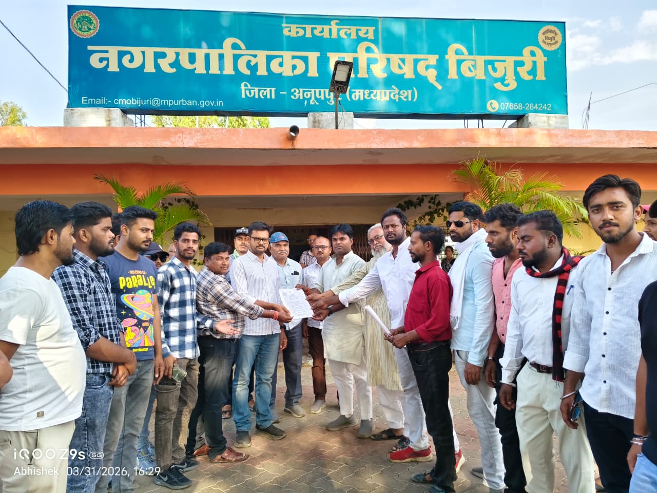 अनूपपुर, 31 मार्च । मध्य प्रदेश के अनूपपुर जिले के बिजुरी नगर में पेयजल व्यवस्था से जुड़ी विभिन्न समस्याओं को लेकर जिला पंचायत सदस्य राम जी ‘रिंकू’ मिश्रा ने कांग्रेस कार्यकर्ताओं, पदाधिकारियों एवं नगरवासियों के साथ मंगलवार को मुख्य नगर पालिका अधिकारी बिजुरी को ज्ञापन सौंप नगर में शुद्ध पेयजल उपलब्ध कराने तथा जलापूर्ति व्यवस्था में व्याप्त खामियों को तत्काल दूर करने की मांग की।