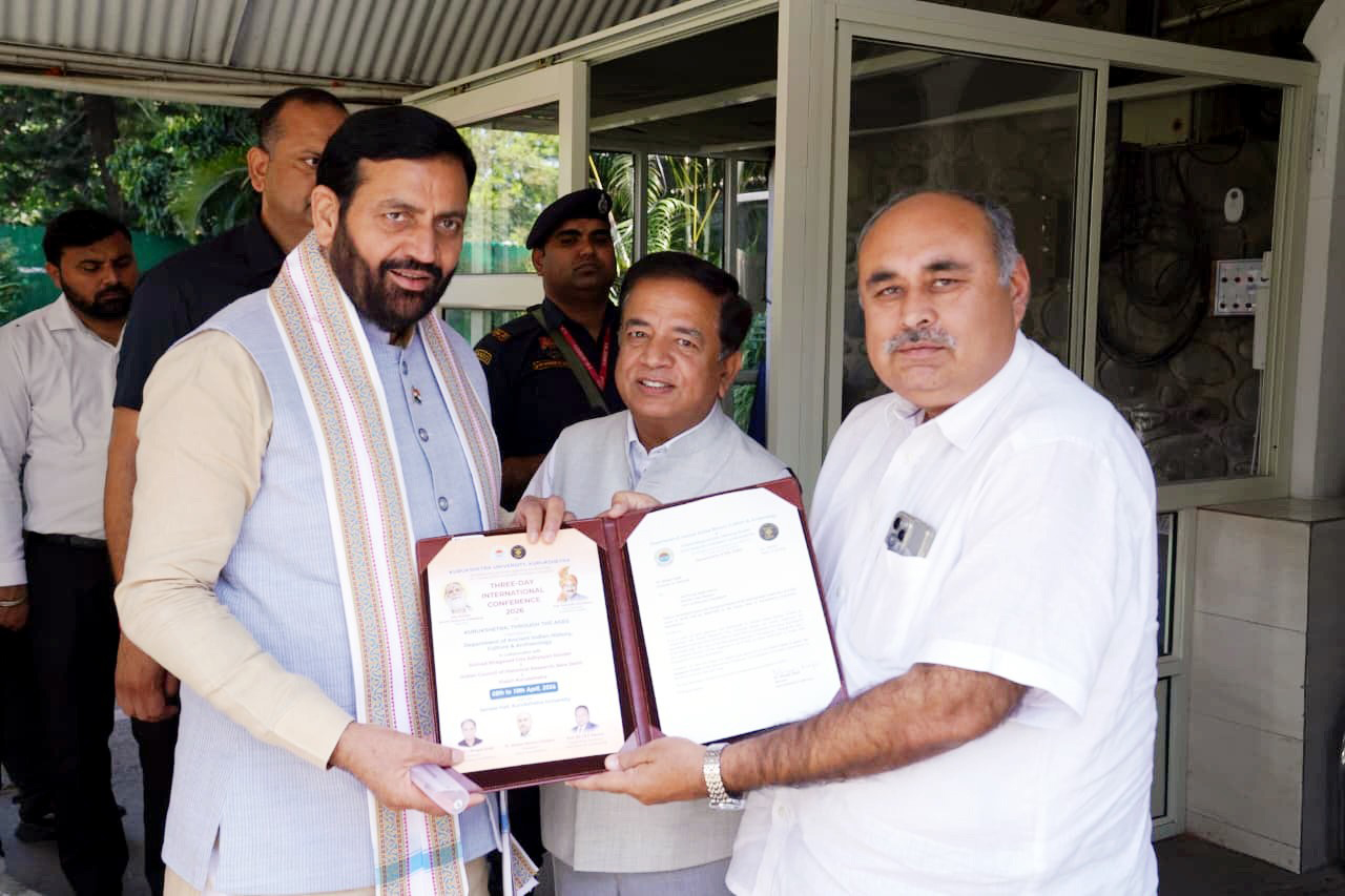 चंडीगढ़, 01 अप्रैल । कुरुक्षेत्र के इतिहास और संस्कृति विषय पर कुरुक्षेत्र विश्वविद्यालय में तीन दिवसीय वैश्विक मंथन होगा। अंतरराष्ट्रीय सम्मेलन में कुरुक्षेत्र के इतिहास, संस्कृति, ऐतिहासिक और धार्मिक महत्व पर इतिहासकार, शिक्षाविद्, शोधार्थी और प्रबुद्धजन चर्चा करेंगे। कुरुक्षेत्र विश्वविद्यालय के सीनेट हॉल में 8 से 10 अप्रैल तक कुरुक्षेत्र के इतिहास और संस्कृति पर तीन दिवसीय अंतरराष्ट्रीय सम्मेलन ‘कुरुक्षेत्र: थ्रू द एजेस’ का उद्देश्य कुरुक्षेत्र की ऐतिहासिक यात्रा को पुरातन काल से लेकर वर्तमान समय तक समझना है। अंतरराष्ट्रीय सम्मेलन के लिए विजन कुरुक्षेत्र के अध्यक्ष मदन मोहन छाबड़ा ने सीएम आवास संत कबीर कुटीर चंडीगढ़ में मुख्यमंत्री नायब सिंह सैनी को निमंत्रण सौंपा और उन्हें सम्मेलन की महत्ता के बारे मेंअवगत कराया।