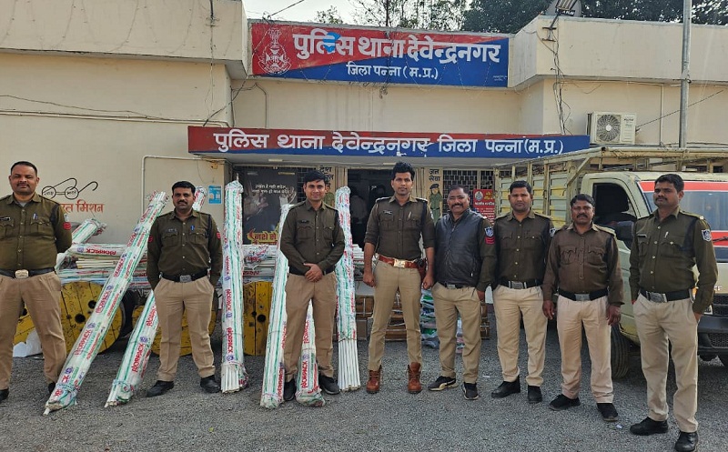 पुलिस मुख्यालय द्वारा सोमवार को जानकारी दी गई कि पन्ना जिले के थाना देवेंद्रनगर क्षेत्र में नागौद–खजुराहो रेलवे प्रोजेक्ट के तहत ग्राम फुलवारी स्थित रेलवे स्टेशन भवन से केबल, वायर, पीवीसी पाइप एवं अन्य इलेक्ट्रिकल सामग्री की चोरी के मामले में पुलिस ने त्वरित कार्रवाई करते हुए लगभग 20 लाख रुपये की संपत्ति जप्त की है। वहीं, विदिशा जिले के थाना सिविल लाइन पुलिस ने मुखबिर सूचना एवं तकनीकी साक्ष्यों के आधार पर तीन अलग-अलग चोरी की घटनाओं का खुलासा करते हुए 02 आरोपियों को गिरफ्तार किया है। आरोपियों के कब्जे से पुलिस ने चोरी की बोलेरो पिकअप वाहन, मंदिर से चोरी किया गया मुकुट एवं छत्र तथा चोरी किया गया बिजली तार सहित लगभग 9 लाख 20 हजार रुपये की सामग्री जब्त की है।
