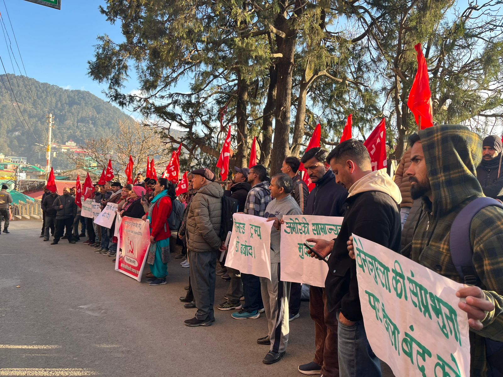 शिमला, 05 जनवरी । अमेरिका द्वारा वेनेजुएला पर किए गए कथित सैन्य हमलों के विरोध में सोमवार को शिमला में प्रदर्शन किया गया। सीटू केंद्रीय कमेटी के आह्वान पर सीटू जिला कमेटी शिमला ने जिलाधीश कार्यालय के बाहर यह प्रदर्शन किया, जहां अमेरिका की आक्रामक नीतियों की कड़ी निंदा की गई और नारेबाजी की गई।