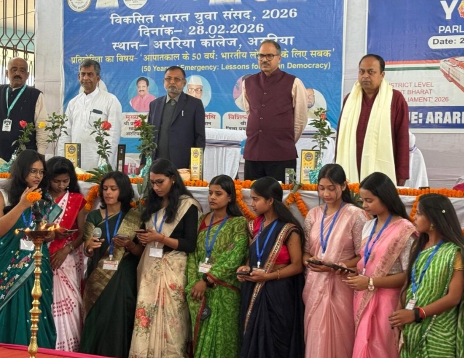 अररिया कॉलेज में विकसित भारत युवा संसद कार्यक्रम का शनिवार को आयोजन किया गया। कार्यक्रम का संचालन संसदीय परंपराओं के तर्ज पर किया गया, जिसमें छात्र-छात्राओं को लोकतंत्र एवं संसदीय कार्यप्रणाली को निकट से जानने का अवसर मिला। कार्यक्रम का उद्घाटन पूर्णिया विश्वविद्यालय के कुलपति प्रो. (डॉ.) विवेकानन्द सिंह ने दीप प्रज्वलित कर किया।